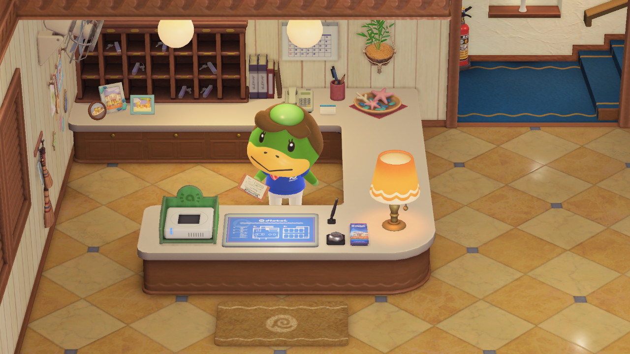 Das Hotel beherbergt täglich wechselnde Gäste, die als Touristen auf deiner Insel herumlaufen. Die Hotelzimmer werden von Touristen unterschiedlicher Persönlichkeiten bewohnt, sodass pro Persönlichkeit maximal ein Tourist im Hotel wohnt. Welches Zimmer von welcher Persönlichkeit bewohnt wird, ist unterschiedlich. Eingerichtete Zimmer kannst du besuchen, wenn du hinten in der Lobby auf die Treppe zuläufst.