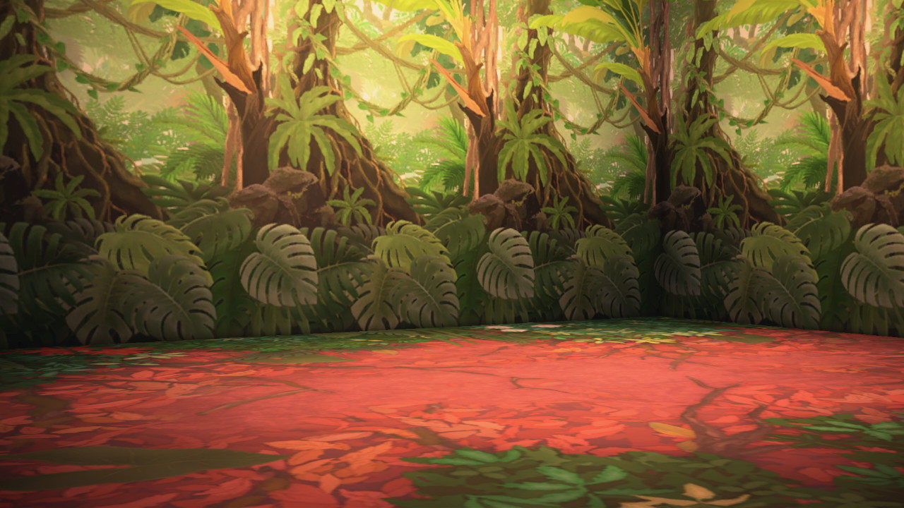 Das Motiv „Dschungel-Zimmer“ kann nur für VIP-Zimmer im Hotel verwendet werden. Zu Beginn ist das Zimmer mit der Dschungeltapete und dem Dschungelboden eingerichtet und das warmweiße Licht ist eingeschaltet. Stellst du ein Musikabspielgerät auf, ist „K.K. Marathon“ vorausgewählt.