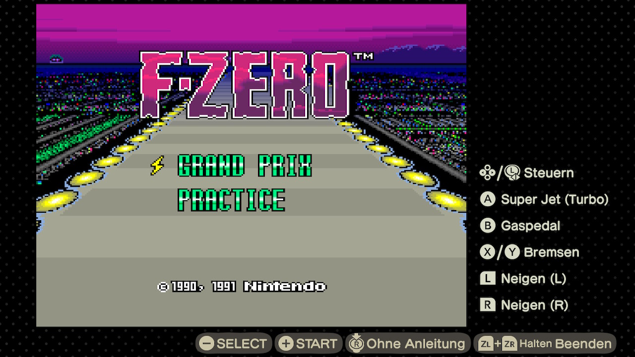 | Super NES (NTSC-Version) Super NES (NTSC version) | F-Zero | ![]() | ✘ | 21.11.1990 | ![]() |