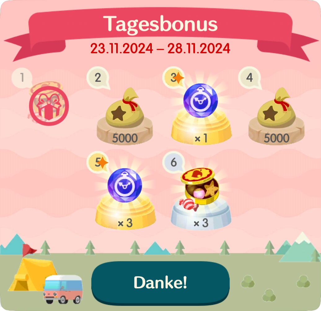 Hier findest du die Tagesboni, die es zu verschiedenen Zeiten im Jahr 2024 gab.